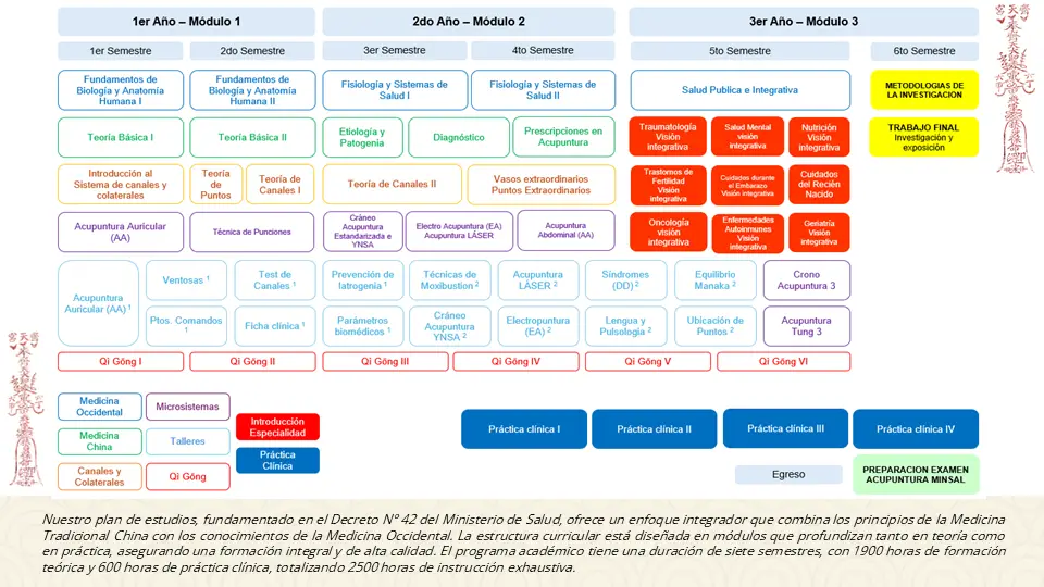 Nuestro programa de estudio cumple con todos los estándares requeridos por Chile en el Decreto 42 que regula el ejercicio de las prácticas médicas alternativas como profesiones auxiliares de la salud y de los recintos en que éstas se realizan, Para más información sobre las normativas